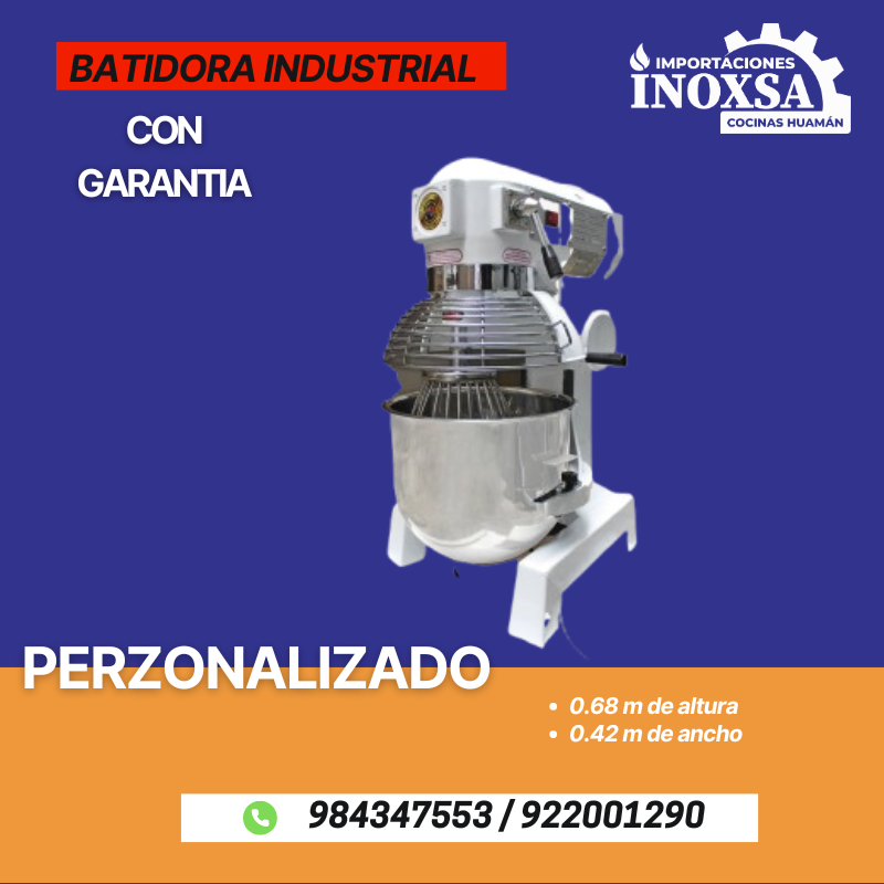 Eleva la productividad de tu panadería, pastelería, o pizzería con la Batidora Industrial de IMPORTACIONES INOXSA / COCINAS HUAMÁN. Este equipo esencial está diseñado para manejar grandes volúmenes de masa, cremas y mezclas con una eficiencia y fiabilidad inigualables, garantizando resultados profesionales en cada uso.