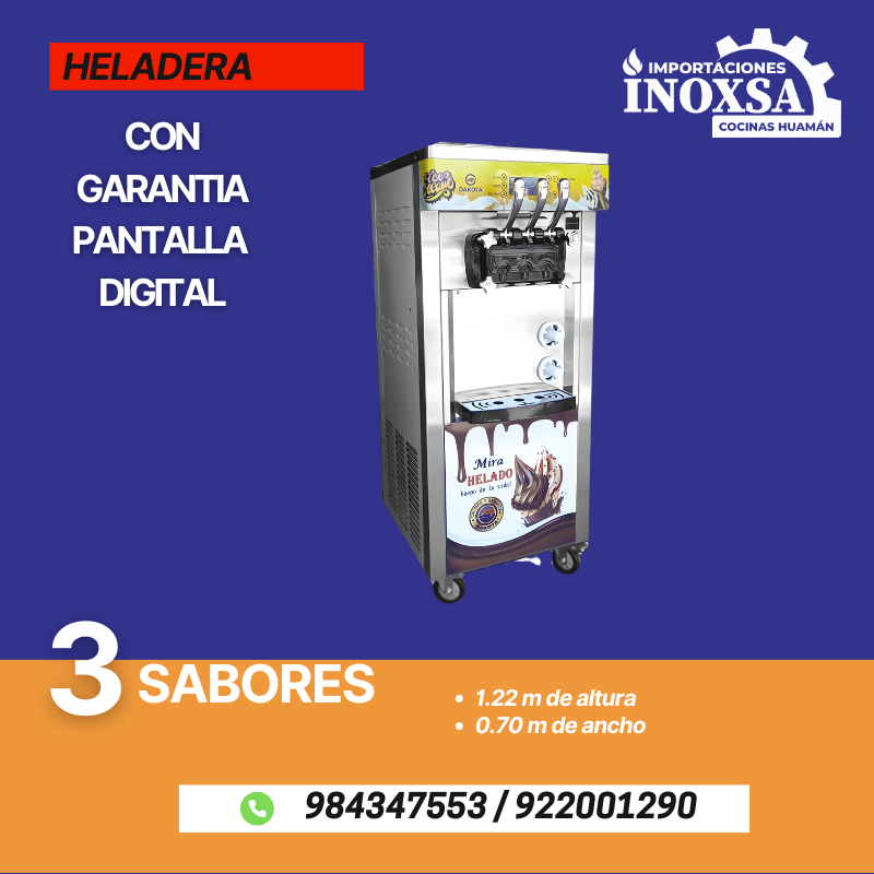 Potencia la rentabilidad de tu negocio de heladería, restaurante, o cafetería con la Máquina de Helados Soft Industrial de IMPORTACIONES INOXSA / COCINAS HUAMÁN. Este equipo de alto rendimiento y diseño robusto está diseñado para ofrecer una producción constante y de calidad, asegurando la máxima satisfacción de tus clientes.